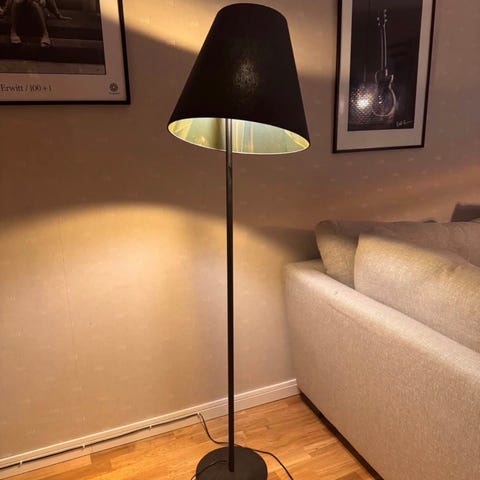 Hej! Jag vill sälja en Hektar lampa från Ikea i mörkgrå färg. Den har sällan använts, står bara och samlar damm. Den är i stort sett i perfekt skick, men ibland kan det finnas några små repor om man tittar väldigt nära.