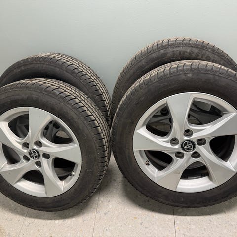 4 st Sommardäck (17”) Continental Eco Contakt 6, 215/55 R 17 V med Toyotas originalfälgar lättmetall. Rullat ca 2500 mil på en Toyota Yaris Cross. Mönsterdjupet är 4,5-5 mm.