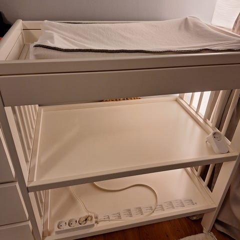 IKEA skötbord med låda och hylla