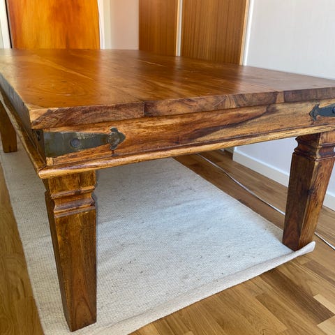 Stort och gediget matbord med vackra detaljer.