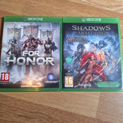 Xbox One Middle-earth Shadow of Mordor och Shadow of War spel. Båda spelen är actionrollspel i fantasy-miljö med 18-års åldersgräns. Fysiska utgåvor på skiva i standard Xbox One-fodral. Passar för spelare som vill ha två delar i Middle-earth-serien till Xbox One.