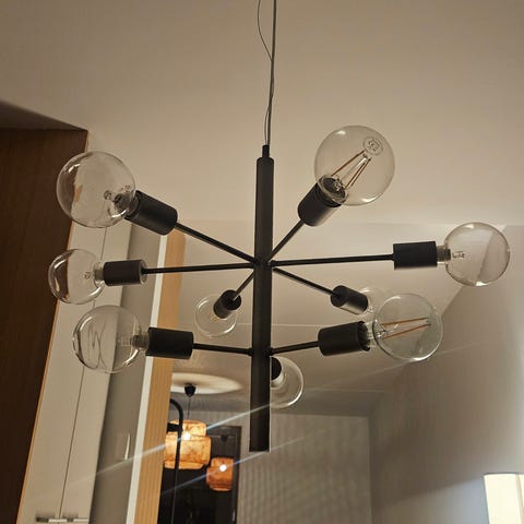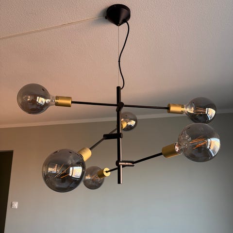 Säljer två taklampor, den ena svarta är från Clas Ohlson med tillhörande lampor, 600kr