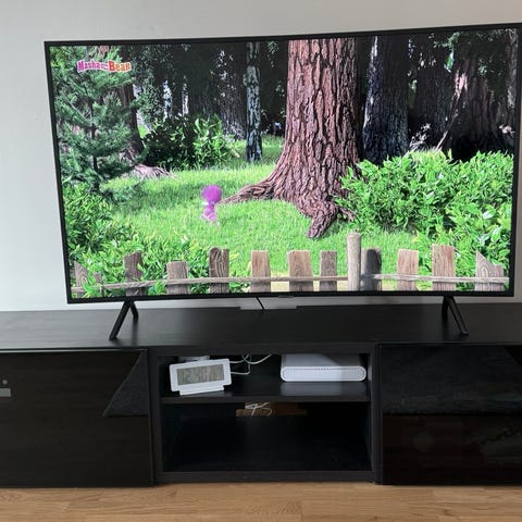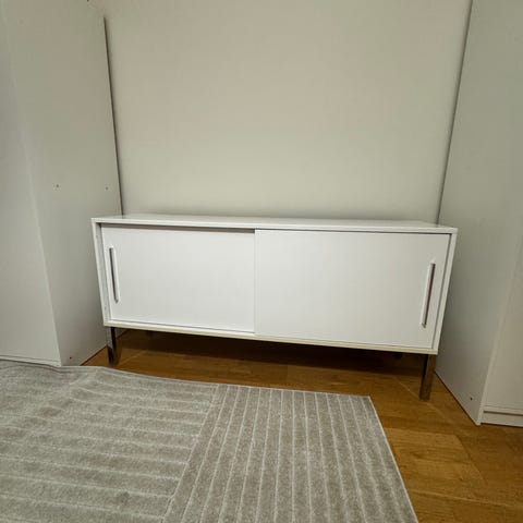 En vit TV-bänk i super fint skick! Höjd: 50,5cm bredd: 120cm och djup: 33,5cm