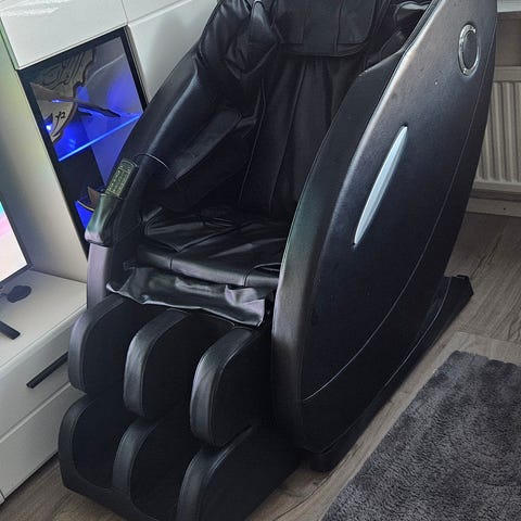 Det här är en rejäl och stabil massagefåtölj, men modellen är ändå smidig i sitt utförande och användbar som en vanlig fåtölj i t ex ett vardagsrum utan att ta över hela rummet. Färdiga program finns att välja på eller så har man möjlighet till egna inställningar. En skön stol med riktigt bra massage. Fungerar utmärkt. Fåtöljen är tung så man behöver vara två personer för att bära den. Katt finns f k i hemmet.