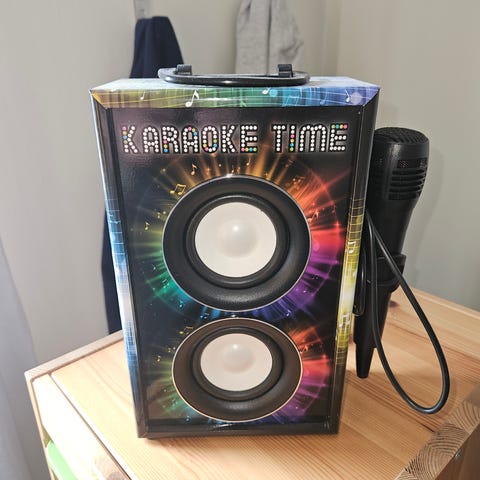 Karaoke med fjällkontroll, med kassetspelare och CD. Pris 350kr. Finns i Gbg.