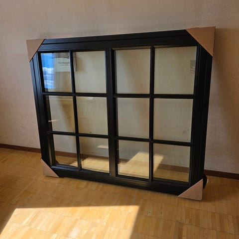 3-delat fönster i vitmålat trä med glasrutor i spröjsad stil. Passar för montering i bostad, fritidshus eller liknande byggnad där ett större fönsterparti önskas. Monterat i karm och levererat på pall enligt bilden. 3-glas isolerglas mått 18x16 ( bredd 178cm x höjd158cm