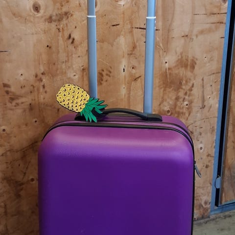 Kabin resväska Aosheng, ca 57x38x22 men kan göras bredare genom dragkedjefunktion. Lite sliten i tyget inuti vid innerfack, se bild samt lite sliten resår. Saknas även en plupp som ska sitta över en skruv och en detalj vid handtaget som är lite löst. Inget som påverkar funktionen, utan rullar och drar jättebra!