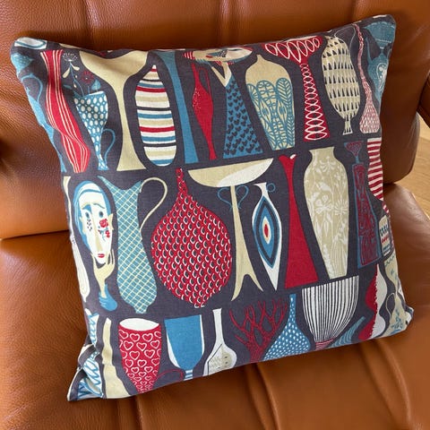 Fin helt ny design kudde med Josef Frank tyg på framsidan och enfärgad baksida, kanten är dekorerad med ljust lammskinn, passar som prydnadskudde i soffa, fåtölj eller på säng.