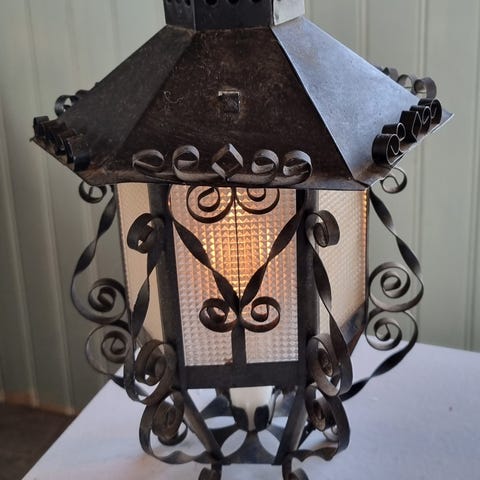 Kuporna är hela men den svarta metallen behöver lite omsorg och ny färg. Annars helt ok. Höjd ca 52cm omkrets kupa ca 24cm.