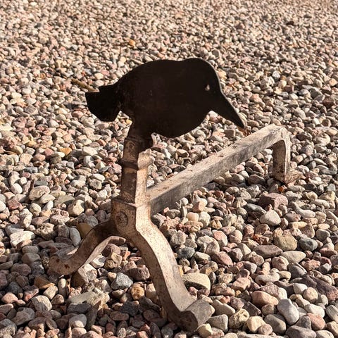 Eldstadset i svart metall. Setet består av flera verktyg för skötsel av öppen spis, exempelvis tång, skyffel och borste, samlade i ett ställ. Passar för användning vid kamin eller öppen spis för att hantera ved och aska på ett praktiskt sätt.