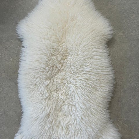 Vitt fårskinn från gårdens egna djur. Berett i Tranås.