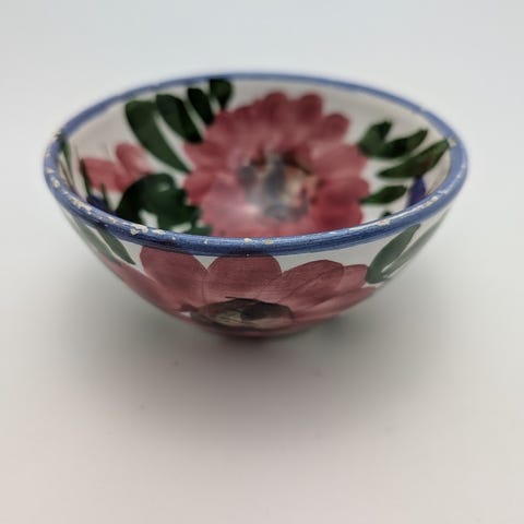 Keramik soppterin med lock och slev från Bassano Italien. En liten spricka men annars i väldigt bra skick.
