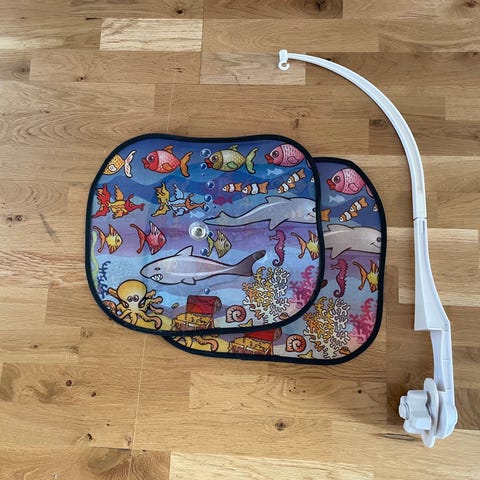 Två oanvända solskydd med babblarna