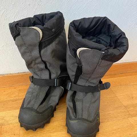 Damasker i rött och svart. Lämpliga för användning över skor eller kängor vid utevistelse. Retro så det sjunger om det.