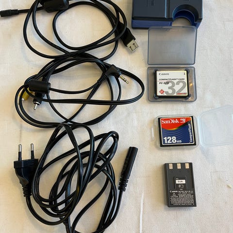 Liten, lätt kompaktkamera. Ingår rem, batteriladdare och batteri.