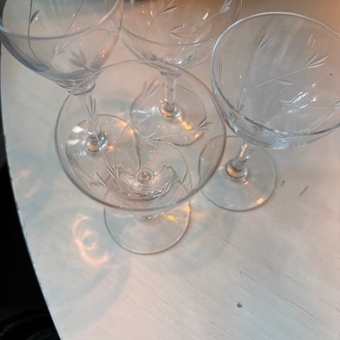 Design: Tunnt glas med rundad kupa och en graverad dekor, ofta förknippad med romantisk eller klassisk stil.