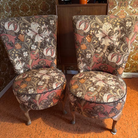 KERSTIN HÖRLIN-HOLMQUIST. "Lilla Eva", fåtöljer, ett par, ur serien " Paradiset Triva ", Nordiska kompaniet, 1900-talets mitt.
