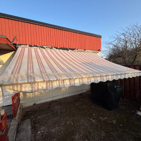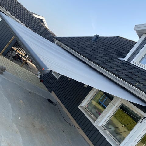 3,50 m bred 2,80 m utrullad. Har video om man vill se när den fälls ut.