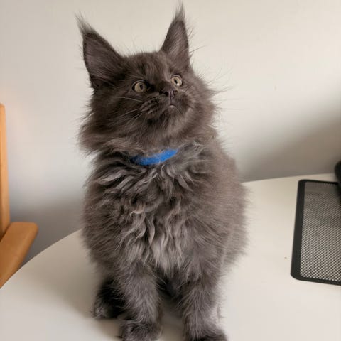 Här finns en mysig och lekfull Maine Coon-blandning, hane, som söker sitt nya kärleksfulla hem.
