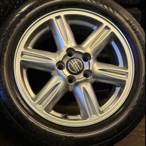 Vi erbjuder en komplett uppsättning 16-tums original Volvo aluminiumfälgar utrustade med premium sommardäck av märke NOKIAN NORDMAN.