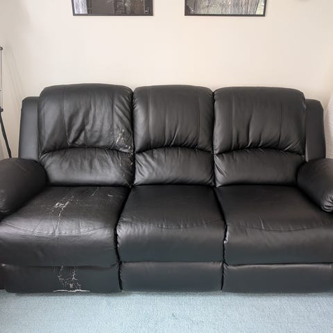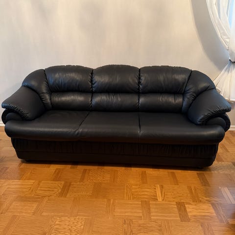 Hej säljer mitt möbelset av läder i nyskick inga skavanker eller förstört läder på sofforna de är även utdragbara för benstöd.