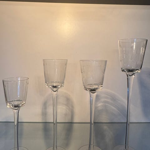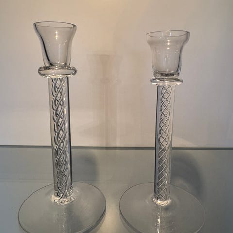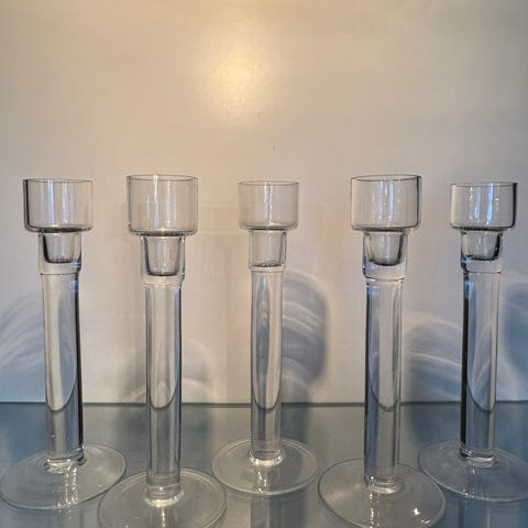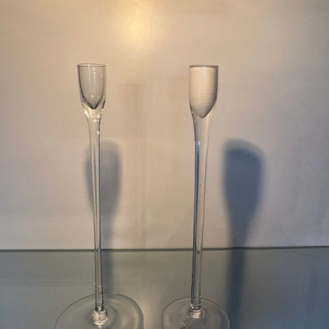 Enkla, transparenta ljusstakar som kan användas som dekoration på bord, hylla eller fönsterbräda.