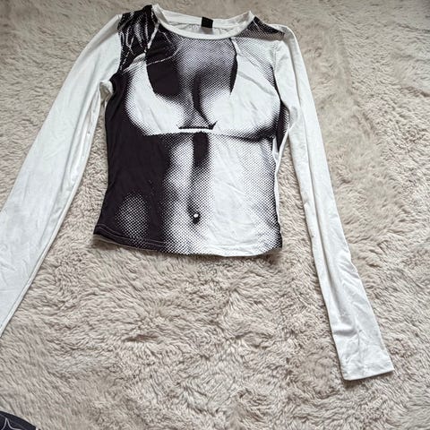 Bershka topp i storlek XS. Långärmad modell i bomull med flerfärgat mönster i ljusa och mörka toner. Tunn, ribbad kvalitet med asymmetrisk nederkant. Passar som vardagstopp eller att kombinera i lager på lager-outfits för dam.