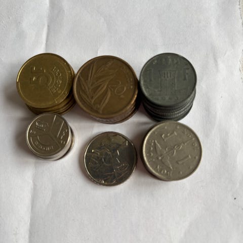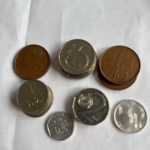 Italien mynt 6 st blandade valörer i metall. Blandning av silverfärgade och guldfärgade mynt, med olika motiv och årtal. Passar för samlare eller som referensmaterial för utländska mynt. Exakta årtal och valörer framgår av bilderna.