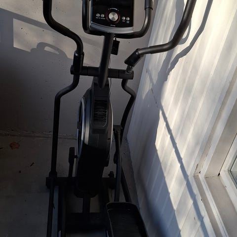 Crosstrainer i svart utförande med integrerad träningsdator. Displayen visar grundläggande träningsdata som tid och andra mätvärden beroende på valt läge. Utrustad med handtag framtill och fotplattor för stabil träning. Passar för konditionsträning inomhus i hemmet, exempelvis i garage eller träningsrum.