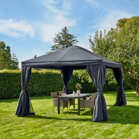 Fristående lusthus trädgårdspaviljong trä vit gul