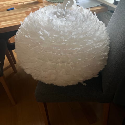 Fjäderlampa som ger ett mjukt och behagligt ljus. Taklampan är tillverkad av vita fjädrar. Den är enkel att montera och rengöra. Takupphängning ingår ej.