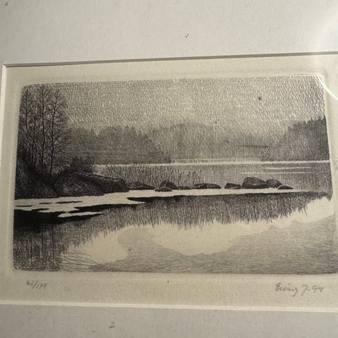 Två etsningar skapade av Harald Sallberg. 2000 kr för båda.