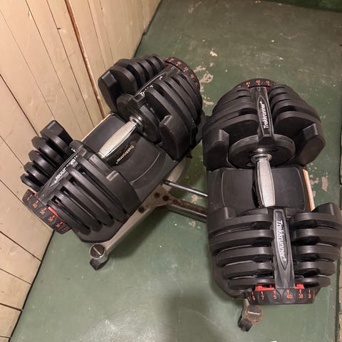Säljer mina justerbara hantlar med vikt-intervall på 5-40 kg per hantel.