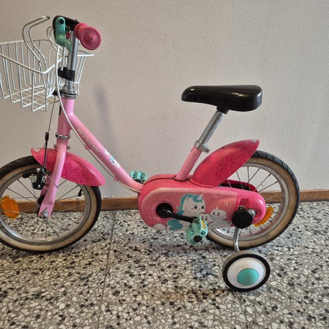 Säljer en Kawasaki KBX barncykel med 14-tums hjul. Perfekt för barn runt 3–5 år. Cykeln är i begagnat skick och har den klassiska Kawasaki-färgsättningen i grönt och svart. Bakdäcket bör bytas då det är hål av slitage.