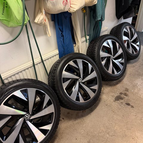 Har en uppsättning utav Vw id 7 original fälgar (svarta) med vinterdäck (friktionsdäck). Har suttit på en vw id.7 men passar alla de andra id modellerna.