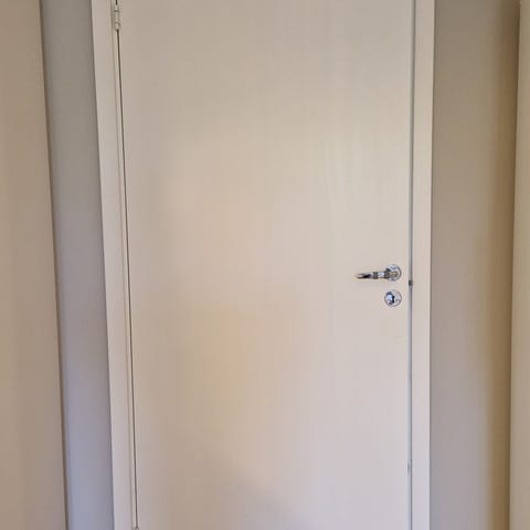 Vita innerdörr i trä med klassisk 3-spegel-design. Tillverkade i massiv furu - inte faner. Låskista med nycklar ingår. Ingen karm. Fungerar utmärkt men dörrspeglarna har rört sig en del och påverkat lackeringen. Nuvarande patina kanske gör sig bra i vissa miljöer?