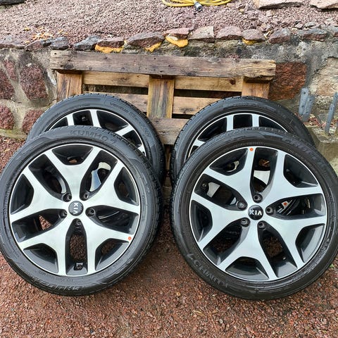 Kia Ceed fälgar med Tpms 205x55xR16, däck Leao, allrund, 6 mm, 3500:-. Toyota Rav4 fälgar utan Tpms 225x60xR17, däck Yokohama, sommardäck, 4 mm, 3500:-.