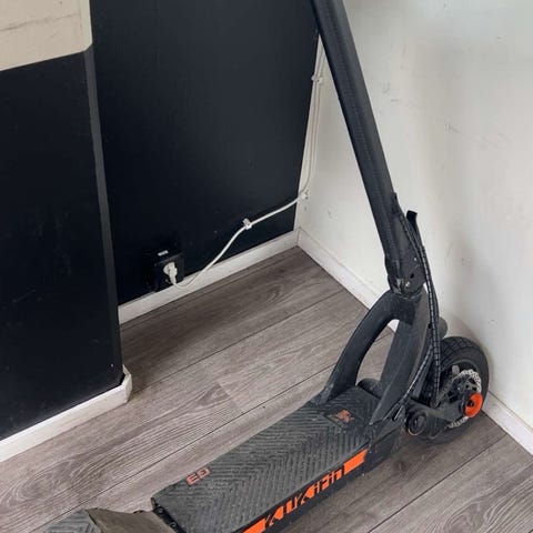Elsparkcykel i svart färg. Modellen har ståplatta med greppyta och hög styre med handtag och bromsreglage. Utrustad med fram- och bakhjul med däck anpassade för stadskörning. Bakskärm och fotstöd finns. Passar för kortare transporter och vardagspendling. Exakta tekniska specifikationer som räckvidd är 60km till 45km beroende på din vikt top Fart är 45km priset kan förhandlas vid snabb köp snälla inga seriösa köpare