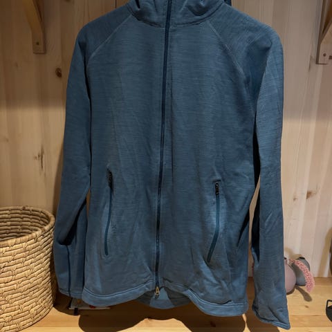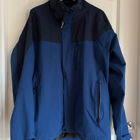 Använd ngn enstaka gång, mest legat i golfbagen….. tror inte att den överhuvudtaget blivit tvätta nån gång, så nästintill nyskick, nån liten svag fläck i ett vitt parti på ärmen, syns knappt och går Förmodligen bort i tvätten,