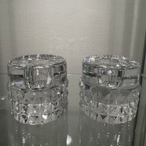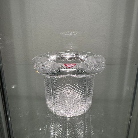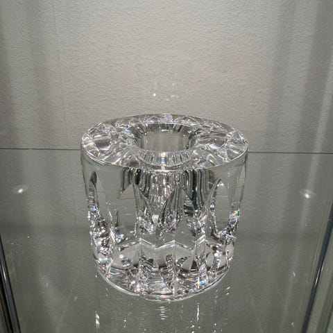 Ljuslykta/ljusstake/ljushållare i glasklar färg. Rund, låg modell med slipat mönster i botten och slät övre kant där ett värmeljus kan placeras. Passar för användning med värmeljus som stämningsbelysning i hemmet eller som dekoration på bord och hyllor.