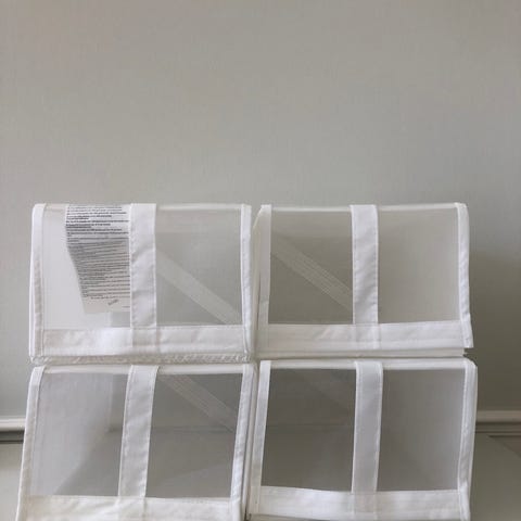 Med 6 st fack. Kardborreknäppningen gör den enkel att hänga upp och flytta. Enkel att förvara då den är tom eftersom den kan vikas ihop platt. Antagligen Ikeas Skubb. Bra skick enligt bilder.