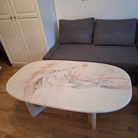 Fint och bastant soffbord i stenmaterial.