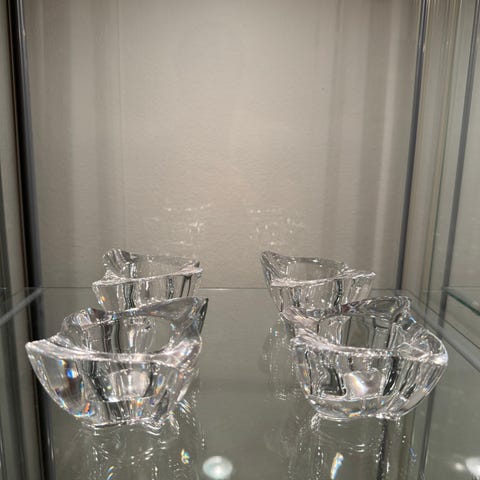 3st Orrefors ljuslyktor i klart glas. Ljuslyktorna har strukturerad yta och rundad överkant med öppning för värmeljus eller mindre ljus. Passar som dekoration på bord, hylla eller i vitrinskåp. Säljs som flera liknande delar enligt bild. Dvs 2st likadana och en udda.