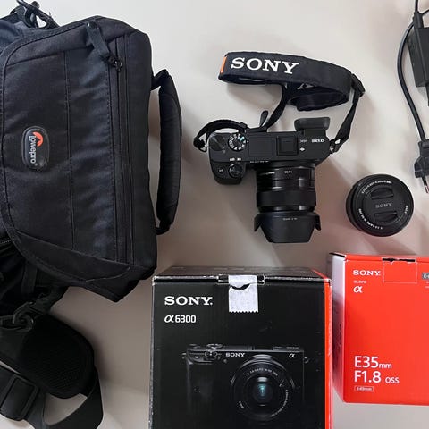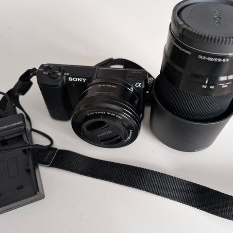 Sony nex-c3. Objektiv 18-55. Motljusskydd, manual, blixt, laddare,batteri och skärmskydd.