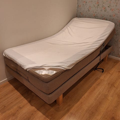 Höj och sänkbar säng. 90 cm bred. Gott skick.