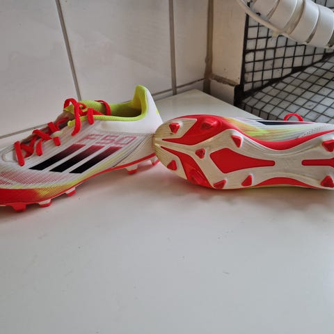Adidas fotboll skor i neon gul färg.Skorna har snörning framtill och ovandel i textil/syntet med de karakteristiska Adidas-ränderna på sidan.