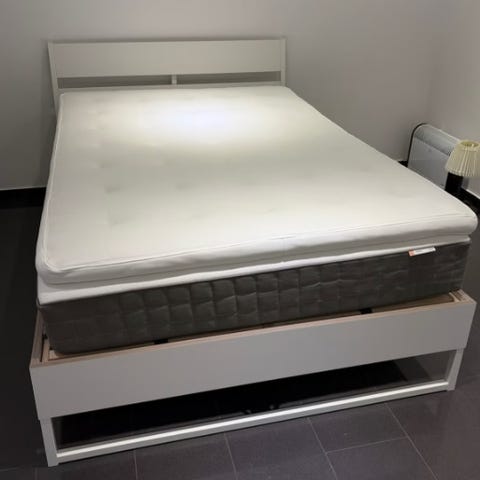 1,40 säng med 2 madrasser,en tjockare å en tynnre