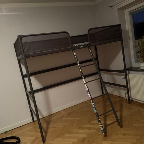 IKEA sängstomme 90x200 inkl ribbotten och två st förvaringslådor på hjul