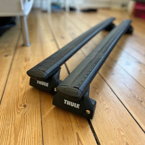 Säljer komplett Thule SquareBar Evo takräcke i bra skick. Passar Volvo XC60 från 2018 med flush rails, har även använt dem på V90 CC.