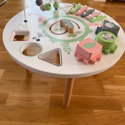 Micki Premium bankbräda med hammare. Brädan har graverade illustrationer och piggar i olika färger. En trähammare medföljer.